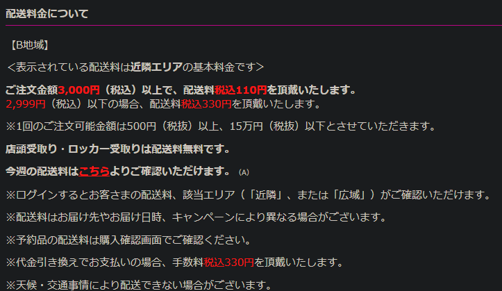 追記:今回の配送料は最寄り店舗のキャンペーンらしいけど、期間が決まってないから心配に変わりない